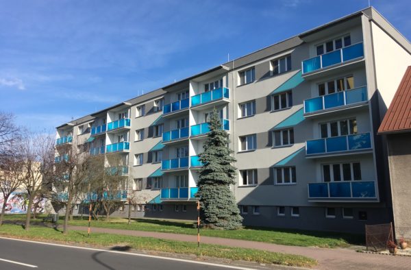 Kompletní revitalizace s dotačním programem IROP, zateplení fasády a soklu, oprava nášlapných vrstev v lodžiích, výměna zábradlí za nové hliníkové, zateplení střešního pláště a ostatní dokončovací práce včetně terénních úprav