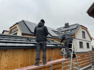 Fotovoltaická elektrárna s nominálním výkonem 20,24 kWp a bateriovým úložištěm GoodWee Lynx Home 26,2 kWh napojena na teplená čerpadla včetně ohřevu teplé vody