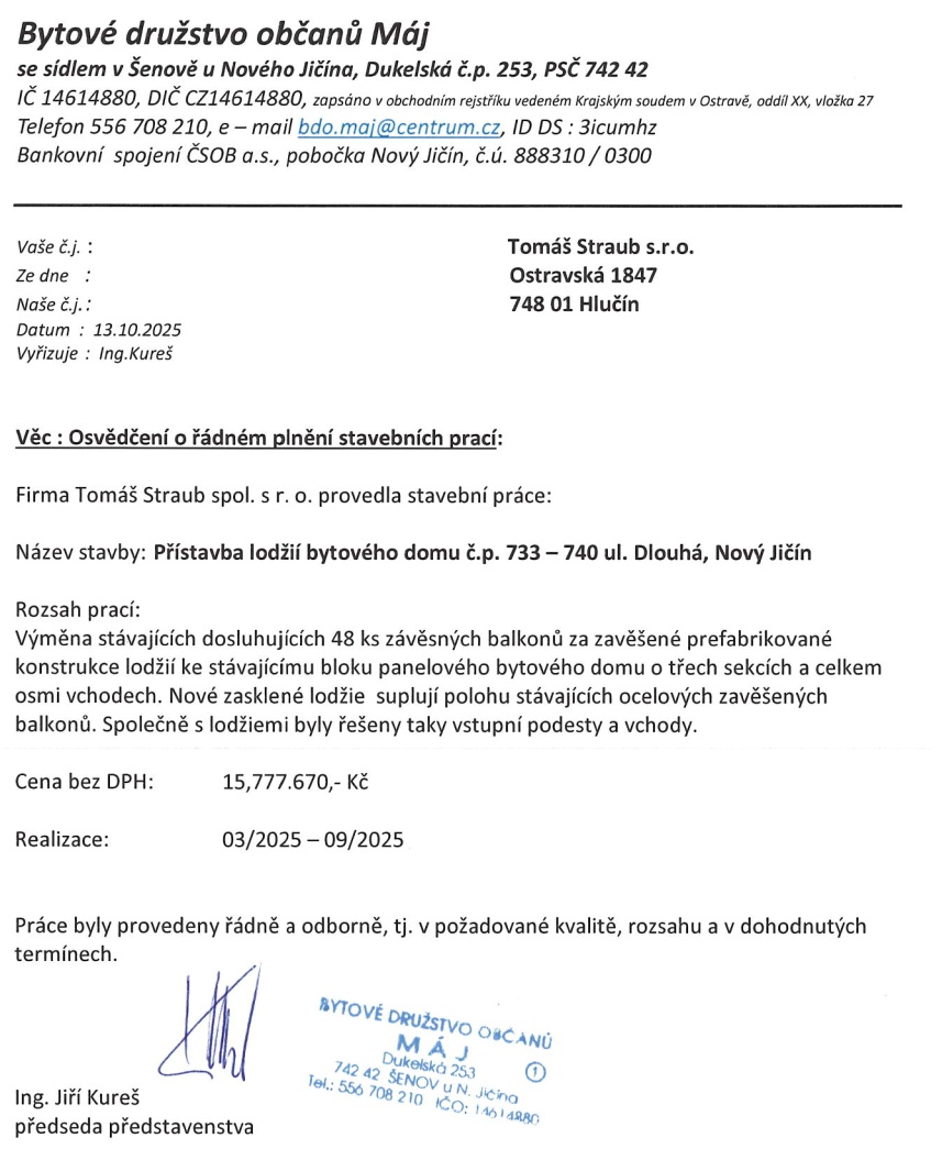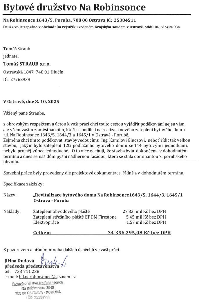 RD Kozmice : Moc děkujeme stavební firmě Tomáš STRAUB s.r.o. za kvalitní a výborně provedenou práci na našem RD. Moc děkujeme a doporučujeme Golovi